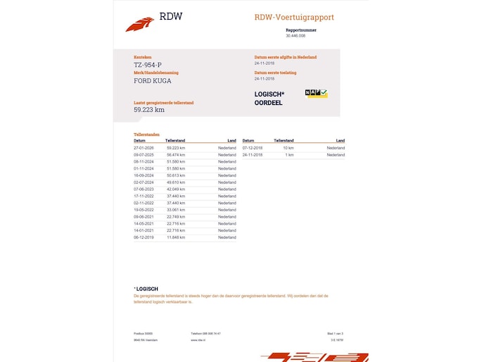 Kilometerstand gecontroleerd
