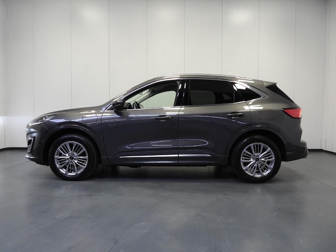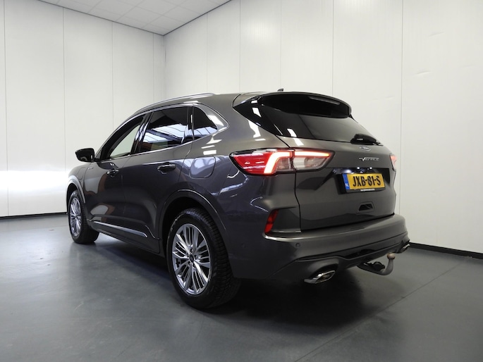 Rijden als nieuw? Dan is deze Ford Kuga een fantastische buitenkans. Prille cijfers op de teller, piepjong ogend, verbluffend actueel in extra's en opties... Deze Ford Kuga heeft het allemaal! Deze auto is bijna nieuw, ondanks dat hij uit 2022 komt; hij heeft slechts 21187 kilometer afgelegd. De aanwezige hybride motor is een slimme extra. Tijdens het rijden en remmen laadt de accu bij, zodat de elektromotor de brandstofmotor kan ondersteunen of het zelfs helemaal overnemen. Dat scheelt in kosten! De lederen bekleding benadrukt de luxe uitstraling van deze auto. Voorzien van zowel stoelverwarming, verwarmbare achterbank alsook een verwarmbaar stuur, zorgt dit voertuig voor uitstekend comfort tijdens koude dagen. De sportstoelen zien er niet alleen prachtig uit, maar zijn ook functioneel, zoals u kilometer na kilometer zult merken. Een praktische extra is de elektrisch bedienbare achterklep die opent en sluit met een druk op de knop. De uitmonstering van deze auto wordt gecompleteerd door onder meer 18 inch lichtmetalen velgen, LED koplampen, geluidsisolerende ramen, in delen neerklapbare achterbank, LED-achterlichten en sportuitlaat.