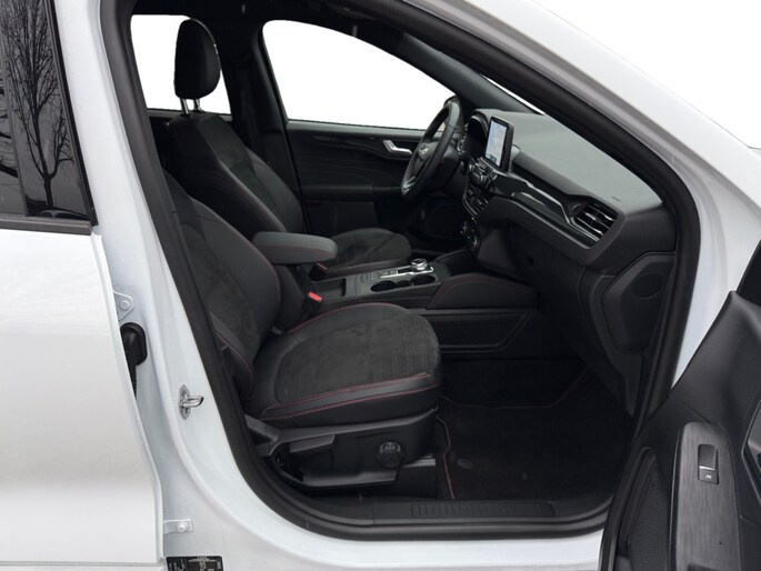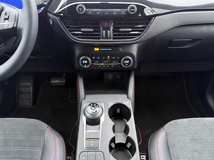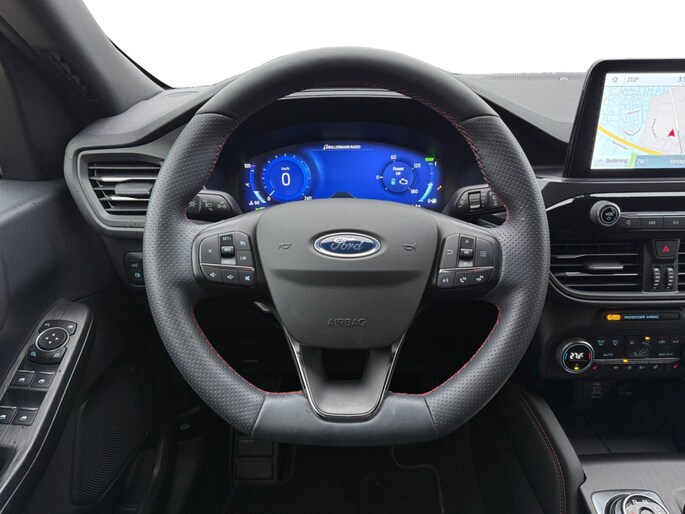 Ford huldigt het principe 'Go Further'. En dat betrekken ze ook op hun auto's zelf. Zuinig in brandstof, innovatieve toepassingen - Ford heeft veel te bieden. Op de teller van deze auto staat slechts 33851 kilometer. Elektrisch rijden: zuinig, goedkoop en schoon. Maar soms net wat beperkt als het gaat om afstand. Daarom heeft deze hybride Ford Kuga zowel een verbrandingsmotor als een elektromotor. Als dat geen perfecte combi is! Terwijl u de bagage inlaadt via de elektrisch bedienbare achterklep, nemen uw passagiers al plaats in het lederen interieur. Mooi! Alles aan deze auto is ontworpen voor comfort, tot aan de stoelverwarming, verwarmbare achterbank, en verwarmbaar stuur. U blijft ook in de scherpe bochten goed ondersteund door de fraaie sportstoelen. Ook is de auto voorzien van: 18 inch lichtmetalen velgen, LED koplampen, sportonderstel, geluidsisolerende ramen, in delen neerklapbare achterbank en LED-achterlichten. Een cockpit, een informatiecentrum... Wat is de cabine eigenlijk niet? Dankzij het digitale dashboard bent u van alles op de hoogte. Nekkramp en verdraaide schouders zijn verleden tijd. Door de achteruitrijcamera is iedere meter achter de auto glashelder in beeld. Dankzij Connected Services weet u precies waar uw auto geparkeerd staat. Ook andere functies, zoals bandenspanning en brandstofniveau, zijn via de app altijd onder handbereik. Het high performance audiosysteem staat garant voor een levendige en krachtige muziekweergave. Onbedoeld snijden na het inhalen gebeurt niet meer, dankzij de achteropkomend verkeer waarschuwing. De uitrusting van deze auto is met dashboard met spraakbediening, full map navigatiesysteem, WIFI-hotspot, automatische airconditioning, DAB ontvangst en regensensor behoorlijk compleet. Tijdens de rit wordt u als bestuurder ondersteund door verschillende systemen die de weg en uw omgeving in de gaten houden. Met het Lane-keeping systeem komt u nooit per ongeluk buiten de rijstrook. Botsingen met een voorligger gebeuren relatief vaak. De forward collision warning slaat tijdig alarm als dat risico ontstaat, zodat u kunt ingrijpen. Verder is deze auto uitgerust met hill hold functie, autonoom remsysteem en bandenspanningcontrolesysteem. Daarbij wordt deze auto aan u geleverd met BOVAG Garantie. Wilt u met deze Ford Kuga een proefrit maken? Bel of mail ons dan nu voor een afspraak.