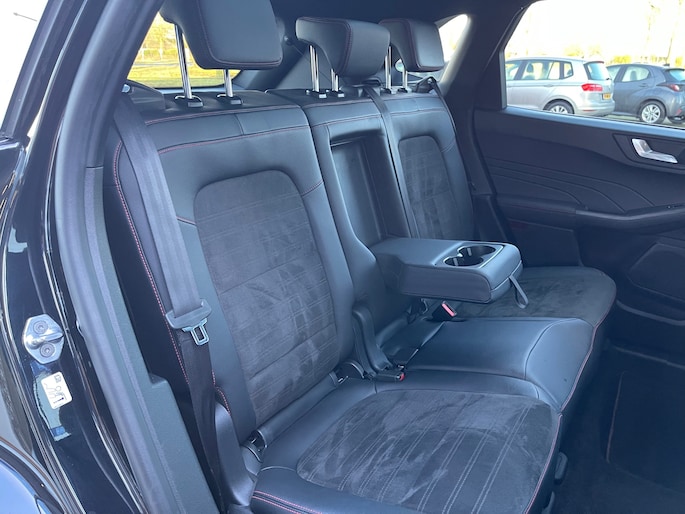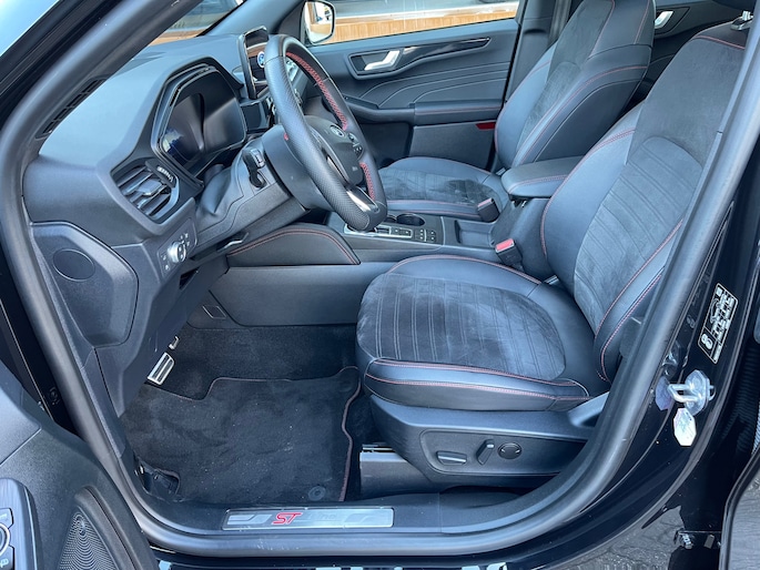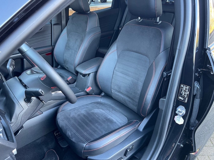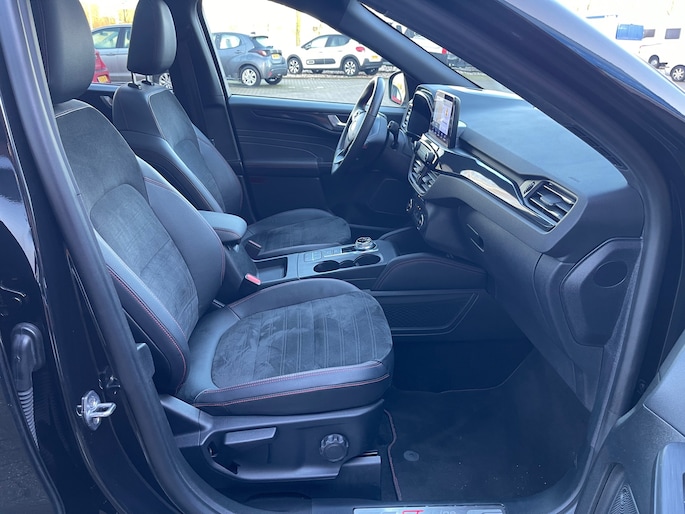 Dit is niet zomaar een Ford KUGA. De hoge prestaties van de motor, het strak afgestelde onderstel en de uitgekiende verhoudingen van de transmissie staan garant voor bergen rijplezier. Een viercilinder motor en een automatische transmissie zorgen voor de uitstekende prestaties van deze auto. Zon en frisse lucht krijgen vrij spel dankzij het elektrisch bediende glazen panorama dak; de elektrisch bedienbare achterklep maakt het u gemakkelijk en u voelt zich omgeven door luxe van het lederen interieur! Ongeacht hoe koud het buiten is, het verwarmbare stuurwiel samen met de verwarmbare voorstoelen en achterbank, zorgt ervoor dat iedereen in de auto zich snel opwarmt. De sportstoelen houden u en uw passagier stevig vast tijdens een snelle rit, maar bieden ook altijd comfortabele ondersteuning. Natuurlijk behoren 18 inch lichtmetalen velgen, LED koplampen, geluidsisolerende ramen, zwarte hemelbekleding, in delen neerklapbare achterbank en LED-achterlichten ook tot de uitrusting van deze complete auto.