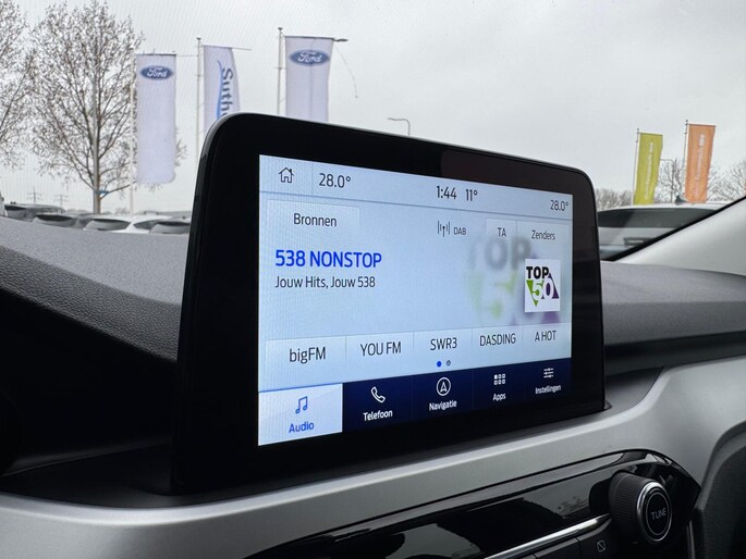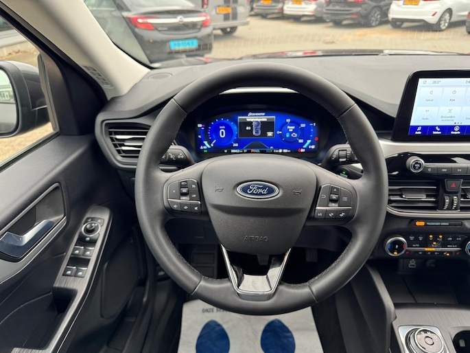 Het digitale dashboard zorgt voor een super functionele display van reisinformatie. Comfortabel en veilig achteruitrijden gaat gemakkelijker dan ooit met behulp van de achteruitrijcamera. Via uw smartphone en Connected Services checkt u eenvoudig de belangrijke functies van de auto, overal en altijd. U kunt tijdens de rit uw ogen steeds op de weg houden, want het audiosysteem en het full map navigatiesysteem kunt u bedienen vanaf het stuur of met spraak. Nooit meer te warm of te koud. De automatische airconditioning zorgt altijd voor de temperatuur die u kiest. Deze Ford is voorzien van regensensor, cruise control en boordcomputer.