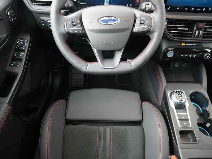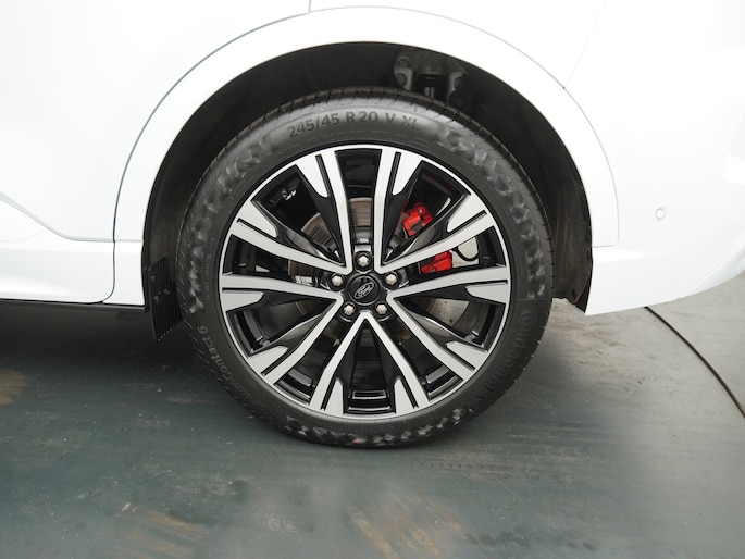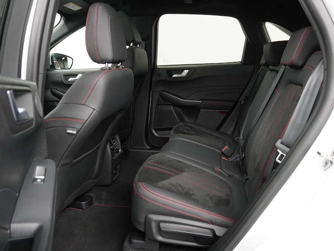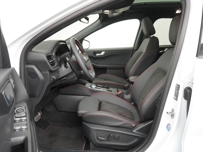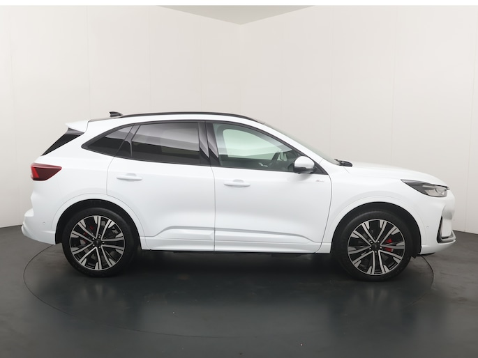 De ST-Line X is de sportieve variant van de Kuga. De auto ziet er door de sportieve bumpers, sideskirts en velgen veel sportiever uit dan de standaarduitvoering. Sinds de facelift van 2024 is de auto nog sportiever vormgegeven. Ook in het interieur vallen de sportieve accenten op. De bekleding is voorzien van rode stiksels. De hemelbekleding is zwart. Ook het onderstel is iets aangepast zodat de auto net iets sportiever stuurt. De zeer fraaie 20" lichtmetalen velgen passen perfect bij de witte kleur en de glanzend zwarte accenten.