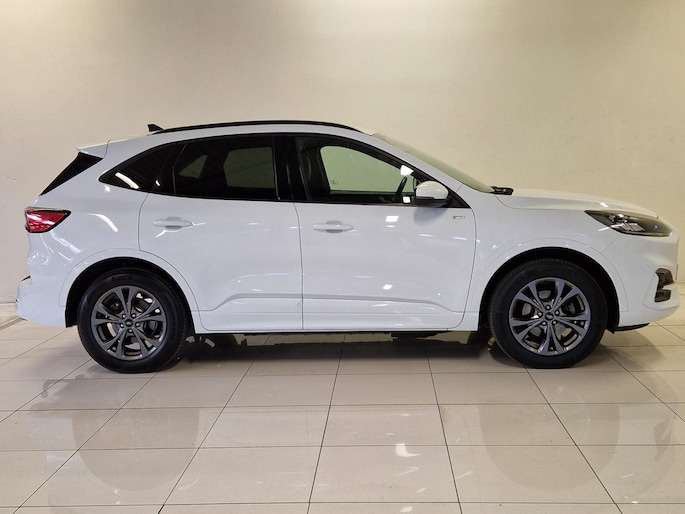 De vormgeving van deze Ford Kuga is stijlvol maar ingetogen en dat maakt meteen duidelijk dat u van deze auto pure kwaliteit mag verwachten. De hybride motor van deze Ford Kuga is de ideale combi van zowel brandstof- als elektromotor. Minder vaak naar de pomp, maar ook zuinig en schoon door de stad! In deze uitvoering is de Kuga voorzien van mooie, maar ook functionele sportstoelen. Een praktische extra is de elektrisch bedienbare achterklep die opent en sluit met een druk op de knop. Ook is de auto voorzien van: 18 inch lichtmetalen velgen, sportonderstel, LED-dagrijverlichting, donker getint glas achter, in delen neerklapbare achterbank en LED-achterlichten.