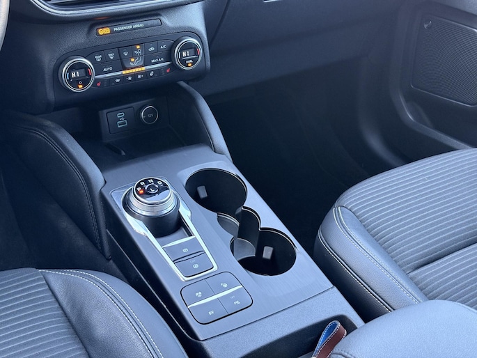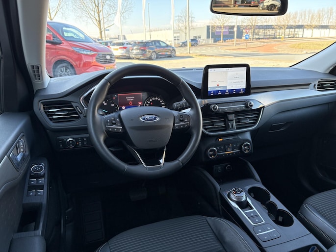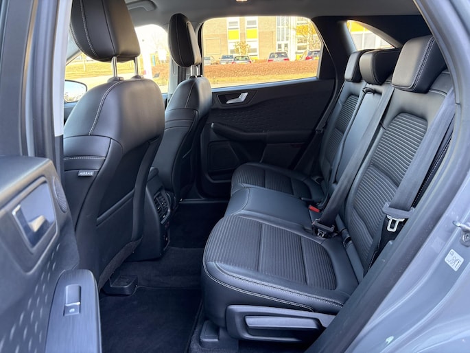 De vormgeving van deze Ford Kuga is stijlvol maar ingetogen en dat maakt meteen duidelijk dat u van deze auto pure kwaliteit mag verwachten. Een solide hybride: zowel een elektromotor als een verbrandingsmotor voor maximaal rijplezier en minimale milieubelasting. Voor het pittige uiterlijk én goed gesteund zitten zorgen de sportstoelen. Bij de rijke uitrusting horen ook 18 inch lichtmetalen velgen, LED koplampen, halflederen bekleding, geluidsisolerende ramen, in delen neerklapbare achterbank en LED-achterlichten.