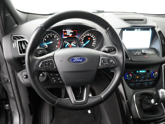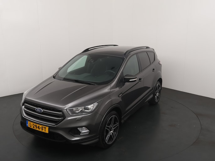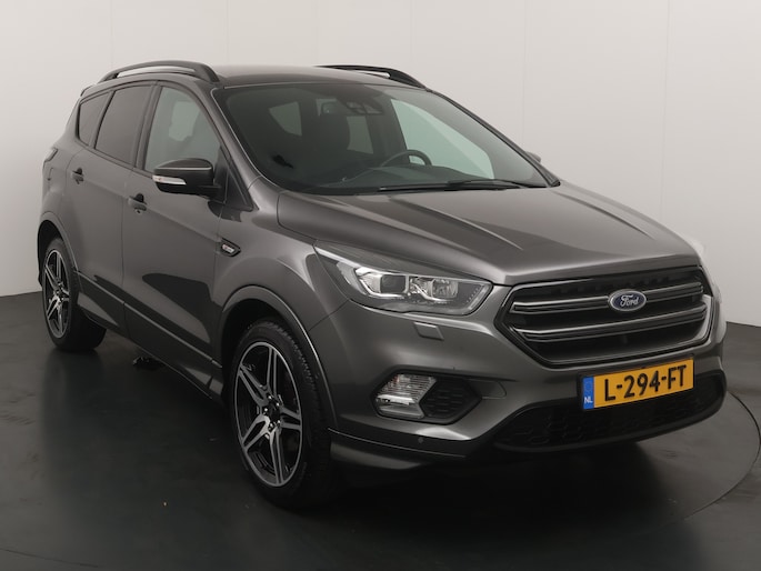 De Ford Kuga is de stoere SUV van Ford. Het is een robuuste auto met grote bodemspeling en een hoge instap. De 150 pk sterke motor maakt dat de Kuga maar liefst 2000 kg mag trekken. Ideaal voor een caravan, boottrailer of paardentrailer! De ST-Line uitvoering is de sportieve tak van de familie. Een subtiel verlaagd onderstel, speciale bumpers, sideskirts en velgen geven de auto een heel andere uitstraling. Ook vering en demping is aangepast waardoor de wegligging nog beter is dan de standaard Focus. Ook van binnen ziet de auto er sportiever uit. Zwarte hemelbekleding en rode stiksels geven ook het interieur een sportieve uitstraling. De speciale 19" lichtmetalen velgen en de grote achterklepspoiler geven de auto extra uitstraling. Aan de binnenkant zien we half leder/half alcantara bekleding met de kenmerkende rode stiksels die bij de ST-Line horen.