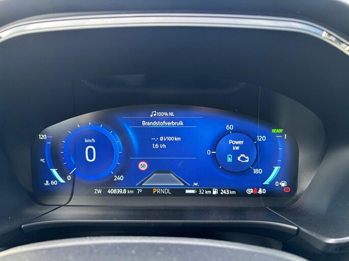 Een cockpit, een informatiecentrum... Wat is de cabine eigenlijk niet? Dankzij het digitale dashboard bent u van alles op de hoogte. Deze Ford Kuga maakt het u makkelijk. Vandaar ook de elektrisch inklapbare trekhaak. Bij de luxe van deze auto hoort ook dual zone automatische airconditioning. Boem is ho? Niet bij deze Ford Kuga. De piepjes van de parkeersensoren waarschuwen u op tijd voor obstakels. De elektronische systemen in deze Ford helpen u actief om comfortabeler te rijden. Een automatisch inschakelbare verlichting en een regensensor houden de omstandigheden onderweg in de gaten. Ook lederen sportstuur, cruise control, keyless entry en automatisch dimmende binnenspiegel zijn aan boord.