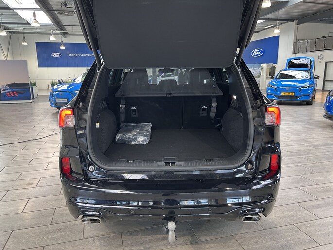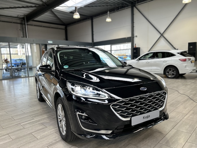 De Ford Kuga is de stoere SUV van Ford. Klanten waarderen de hoge zit, de ruimte en de uitstraling van de auto. Ondanks het ruime interieur is de auto toch compact en gemakkelijk te parkeren. Onder de motorkap ligt een plug-in hybride aandrijflijn. De 2,5 liter motor wordt geholpen door een elektromotor. Samen zorgen ze voor 225 pk systeemvermogen. Tijdens het rijden is nauwelijks merkbaar dat de auto schakelt tussen elektrische- en hybride aandrijving. Dit gaat geheel automatisch. Fijn aan deze Kuga is dat de auto ook op te laden is. Dat kan aan een laadpaal, maar ook gewoon bij een stopcontact. Met een volle accu kan de auto gemiddeld zo'n 50-60 km afleggen. Als de accu leeg is, blijft het een zeer zuinige hybride. De auto is dus ook zeker geschikt voor mensen die de auto nooit zullen opladen! Door de robuuste bouw, stabiele onderstel en het geweldige motorvermogen mag (en kan) de auto een aanhanger van 1500 kg trekken. De auto wordt dan ook vaak gebruikt als trekauto voor een caravan of trailer. De maximale kogeldruk is 100 kg. 2 e-bikes meenemen is dus ook geen enkel probleem. De (elektrisch wegklapbare) trekhaak is in de fabriek al gemonteerd.