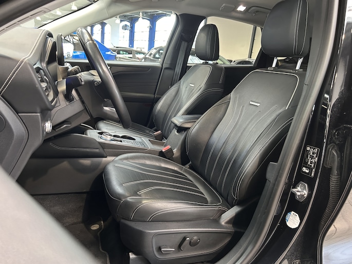 De Vignale is de speciale, luxe uitvoering van de Kuga. Aan de buitenzijde vallen de sportieve bumpers met verchroomde accenten op. Ook de 18" wielen zijn specifiek voor dit type. De speciale zwarte lak Agathe Black past perfect bij de luxe uitstraling van de Vignale. Ook van binnen is meteen duidelijk dat dit geen standaardauto is. Lederen bekleding met een elektrisch verstelbare stoel met geheugen en een met leer bekleed dashboard zult u alleen in de Vignale vinden.