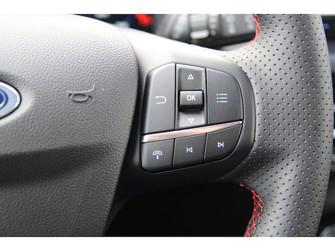 Magnetic metallic Bekleding halfleder met rode stiksels stof 12-weg elektrisch verstelbare voorstoelen + verwarmbare functie Stoelmemory + buitenspiegels bestuurder 360 graden camera Adaptive Cruise Control Voorruitverwarming Stuurverwarming Digitaal dashbord Groot navigatie Traffic Sign Recognition incl. Wrong Way Alert Bang & Olufsen audiosysteem met 10 speakers en subwoofer DAB Blind Spot Cross Traffic Alert met Active Braking Elektrisch bedienbare achterklep met handsfree functie Extra geluidwerend glas in voorportieren Camera voor + achterzijde + zijzijde Electrische inklapbare buitenspiegels Electrische parkeerrem Automatisch inparkeren file en parkeervak Instaplijsten met "ST-Line" logo Lane Change Warning Remklauwen afgewerkt in rood Verschuifbare achterbank . Trekgewicht 2100 KG. Meerprijs trekhaak vanaf € 1500,-