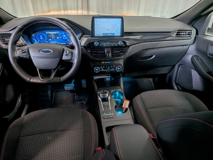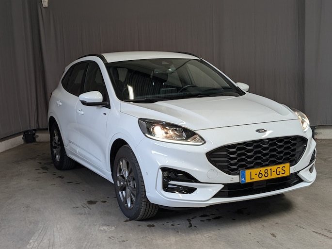 Een van de meest legendarische merken: Ford. Qua techniek en design geheel met de blik op de toekomst. 'Go Further' zeggen ze. En dat is te zien. Mooier kan het eigenlijk niet: de combi van elektromotor en verbrandingsmotor. Met deze hybride Ford Kuga kunt u alle kanten op. De auto is uitgerust met lederen bekleding. Comfortabel zitten, ook als de rit onstuimig is? Dat kan met de sportstoelen. Ook 18 inch lichtmetalen velgen, sportonderstel, LED-dagrijverlichting, in delen neerklapbare achterbank, LED-achterlichten en sportuitlaat horen tot de voorzieningen op deze auto. Via het digitale dashboard bent u permanent op de hoogte van alle informatie die u nodig heeft voor een veilige rit. De 360 graden camera kan het blinde vlek probleem van de achteruitkijkspiegel oplossen, waardoor ongevallen worden voorkomen. Met adaptive cruise control houdt deze auto automatisch afstand tot uw voorligger. Waar u zelf ook bent, u staat altijd in contact met de auto via de app op uw smartphone. Zo controleert u uiteenlopende functies, ook op afstand. De bediening van het audiosysteem en het full map navigatiesysteem gebeurt met knoppen op het stuur en als u wilt zelfs met uw stem. De audio is overigens voorzien van DAB-radio voor een altijd heldere ontvangst. Ook is de Ford uitgerust met: achteropkomend verkeer waarschuwing, automatische airconditioning, draadloos opladen, regensensor, sportstuurwiel en keyless entry. De nieuwste veiligheidssystemen komen in deze Ford Kuga samen. In het instrumentarium laat de verkeersborddetectie de actuele verkeersborden zien. Indien u onbedoeld de rijstrook lijkt te verlaten, reageert het Lane-keeping systeem meteen en corrigeert. Forward collision warning waarschuwt voor een kop-staart botsing. Verder is deze auto uitgerust met dodehoekdetectie, hill hold functie, vermoeidheidsherkenning, autonoom remsysteem en bandenspanningcontrolesysteem. Laat het ons meteen weten als u interesse heeft in deze auto, dan kunnen we een afspraak maken om u de auto te demonstreren.