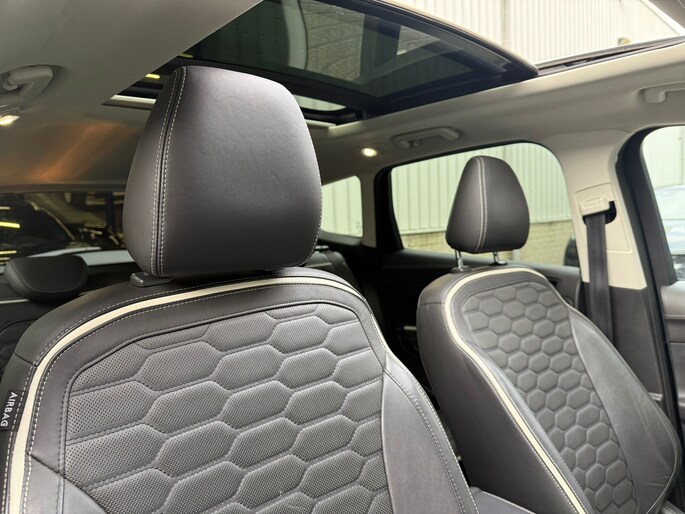 De achteruitrijcamera laat duidelijk zien hoeveel ruimte u nog heeft bij het inparkeren. Adaptive cruise control houdt de ingestelde snelheid vast en houdt afstand tot het voertuig voor u. Spraaksturing maakt het eenvoudiger en veiliger om deze auto onderweg te bedienen. De hoorbare sensatie van het high performance audiosysteem is een ervaring op zich. Je weet altijd waar je moet zijn, dankzij het navigatiesysteem. De uitrusting van deze Ford is met kruisend verkeer detectie, electronic climate control, DAB ontvangst, regensensor, keyless entry en automatisch dimmende binnenspiegel behoorlijk compleet.