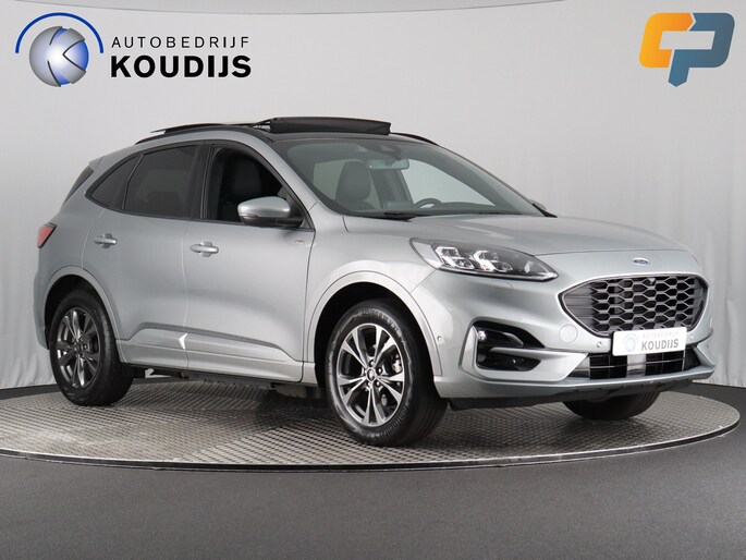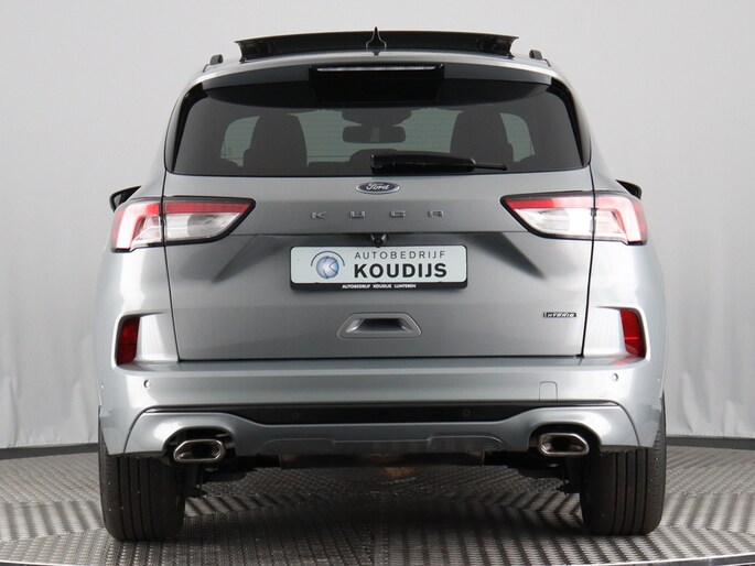 Ford huldigt het principe 'Go Further'. En dat betrekken ze ook op hun auto's zelf. Zuinig in brandstof, innovatieve toepassingen - Ford heeft veel te bieden. De uitstekende prestaties van deze auto komen van de viercilinder motor en de automatische transmissie. Lekker hoor, die verwarmbare voorstoelen. Helemaal op koude dagen. Comfortabel zitten, ook als de rit onstuimig is? Dat kan met de sportstoelen. Comfort, licht en het complete gevoel van ruimte wordt verzorgd door het elektrisch bediende panoramadak. De bagageruimte is toegankelijk via een comfortverhogende elektrische achterklep. Laat ze achterin ook maar genieten: deze Ford Kuga is uitgevoerd met een verwarmde achterbank. Bij de zeer complete uitrusting van deze auto behoren ook 18 inch lichtmetalen velgen, LED koplampen, sportonderstel, geluidsisolerende ramen, in delen neerklapbare achterbank en LED-achterlichten.