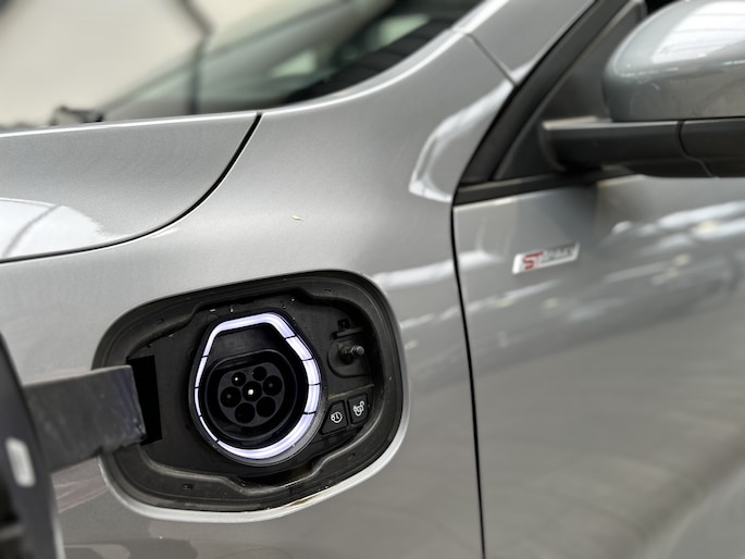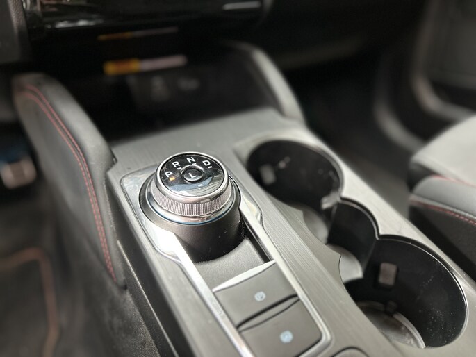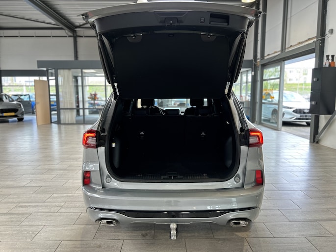 De trekhaak is in de fabriek al gemonteerd. Met een knopje in de bagageruimte komt de trekhaak volledig elektrisch tevoorschijn. De aansluiting voor de verlichting zit mooi onder handbereik aan de zijkant van de trekhaak. Door de 243 pk sterke aandrijflijn en de indrukwekkende wegligging mag de Kuga maar liefst 2100 kg trekken. De maximale kogeldrug is 100 kg. 2 (of 3) e-bikes meenemen is dus ook geen enkel probleem.