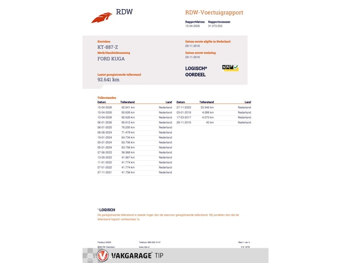 Kilometerstand gecontroleerd