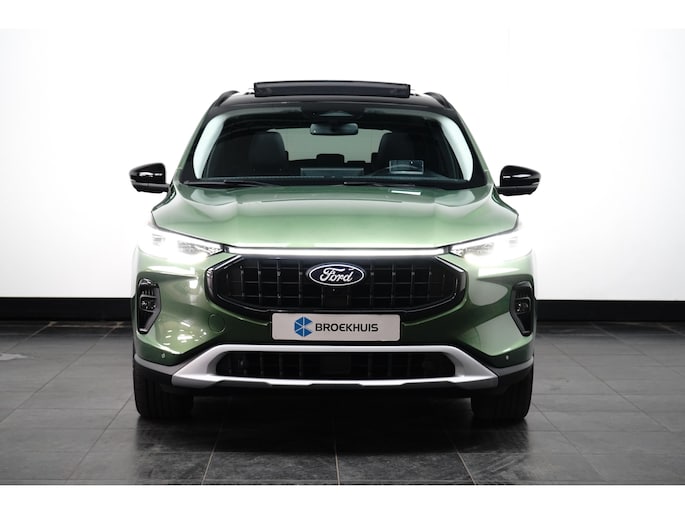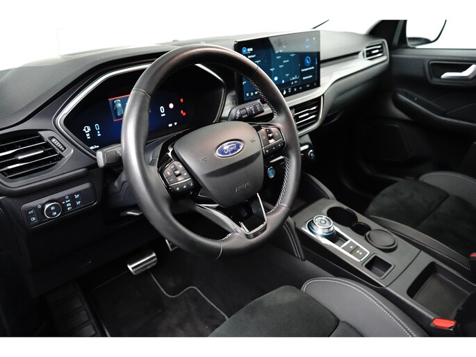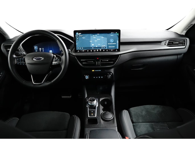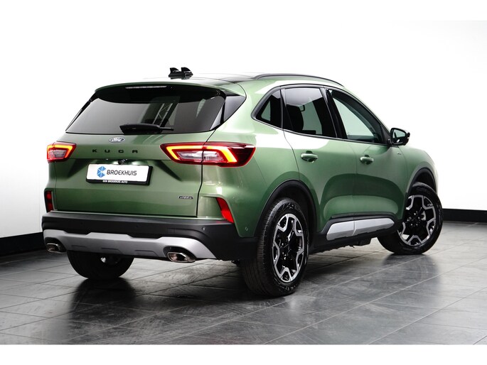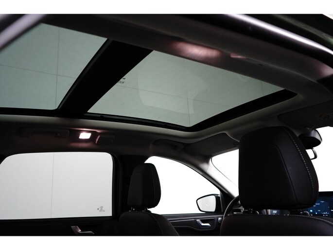 Het is een nette en comfortabele auto, deze Ford Kuga, hij heeft 24461 kilometer gelopen. De combinatie van een verbrandingsmotor en een elektromotor zorgt voor prima rij-eigenschappen en een laag brandstofverbruik. Neem plaats op de comfortabele stoelen. Dankzij de elektrische bediening en het geheugen is het eenvoudig om hierin de beste zitpositie te vinden. Rijcomfort wordt naar een hoger niveau getild in deze auto, met inbegrip van stoelverwarming, een verwarmbare achterbank en een verwarmbaar stuur. Het interieur baadt in daglicht dankzij het elektrisch bediende glazen panoramadak. Met een druk op de knop gaat de elektrische achterklep open. Met matrix LED-verlichting rijdt u eigenlijk altijd met groot licht, dus maximaal zicht. Toch is verblinden er niet bij, want het systeem regelt de verlichting zo dat tegenliggers er geen last van hebben. Bij de uitrusting van deze Ford horen onder meer 18 inch lichtmetalen velgen, geluidsisolerende ramen, in delen neerklapbare achterbank, LED-achterlichten, sportuitlaat en verstelbare lendensteunen. Een gevisualiseerd overzicht van alle belangrijke functies wordt geleverd door het digitale dashboard. Met de 360 graden camera kunt u elk detail rond de auto zien, waardoor mogelijke schade door verkeerd inschatten van afstanden vermeden wordt. Met adaptive cruise control houdt deze auto automatisch afstand tot uw voorligger. In deze auto kunt u de belangrijkste functies bedienen met uw stem. Uw smartphone is tegenwoordig de sleutel tot heel veel. Ook voor deze auto. Remote services, noemen we dat. Waar u ook bent, contact houden is een eitje. De uitrusting van deze auto is met premium audiosysteem, full map navigatiesysteem, achteropkomend verkeer waarschuwing, kruisend verkeer detectie, automatische airconditioning en draadloos opladen behoorlijk compleet. Geavanceerde veiligheidssystemen kijken tijdens elke rit met u mee en schatten continu de risico's in. De auto is voorzien van head-up display, waarbij alle belangrijke informatie wordt geprojecteerd in uw gezichtsveld. U hoeft uw ogen geen seconde van de weg te halen! Wat deze auto ook kan, is lezen. Hij 'leest' voor u de verkeersborden tijdens de rit en attendeert u erop door ze op het dashboard te projecteren. Ongemerkt buiten de rijstrook raken? Nee hoor, het Lane-keeping systeem waarschuwt en corrigeert. In deze Ford vinden we verder een dodehoekdetectie, forward collision warning system, hill hold functie, vermoeidheidsherkenning, autonoom remsysteem en bandenspanningcontrolesysteem. Laat het ons meteen weten als u interesse heeft in deze auto, dan kunnen we een afspraak maken om u de auto te demonstreren.