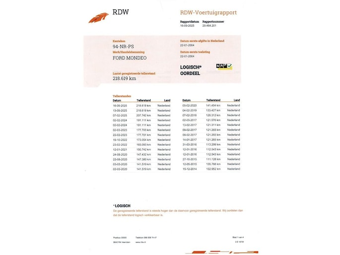Kilometerstand gecontroleerd