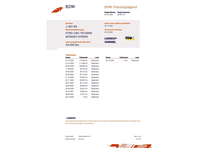 Kilometerstand gecontroleerd