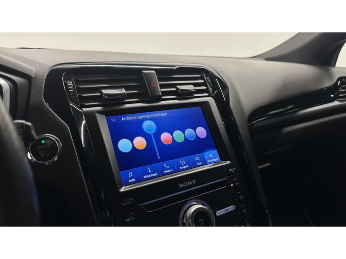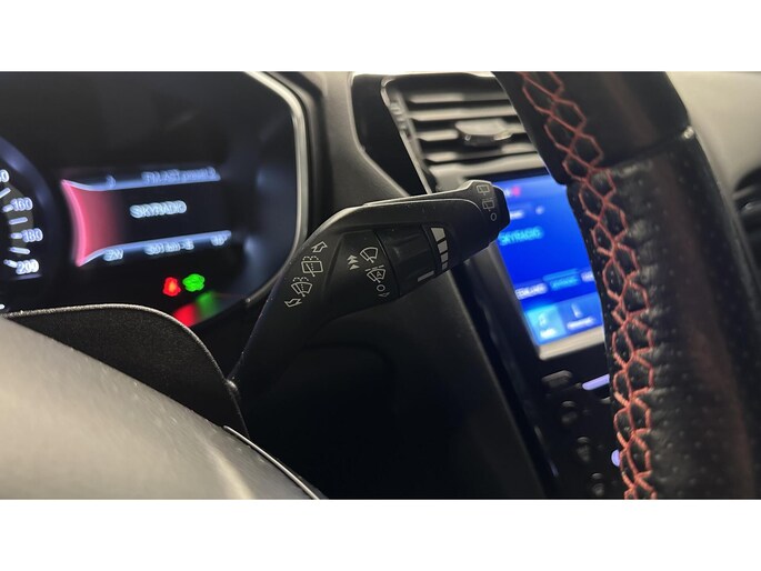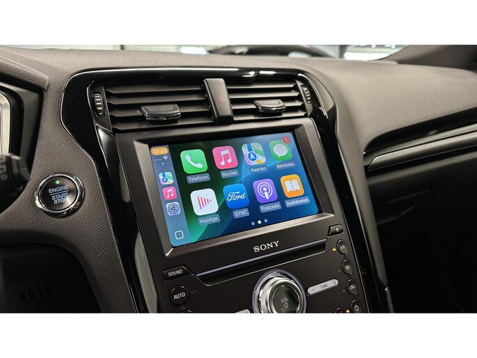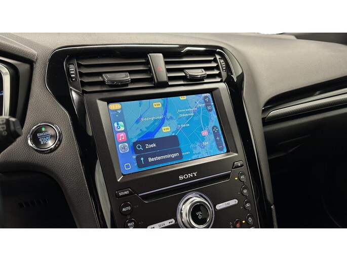 Inparkeren? Met de achteruitrijcamera heeft u er geen omkijken meer naar! Naast handmatige bediening kunt u belangrijke functies met uw stem bedienen dankzij de ingebouwde spraakbediening. Deze Ford Mondeo Wagon is voorzien van remote services. Via uw smartphone bedient u diverse functies ook op afstand en krijgt u informatie over de status van uw auto. Beste route, verwachte aankomsttijd: uw eigen full map navigatiesysteem vertelt u alles! Bij de luxe van deze auto hoort ook automatische airconditioning. Wat u ook in deze auto kunt vinden zijn DAB ontvangst, regensensor, cruise control, keyless entry, automatisch dimmende buitenspiegels en lederen stuur.
