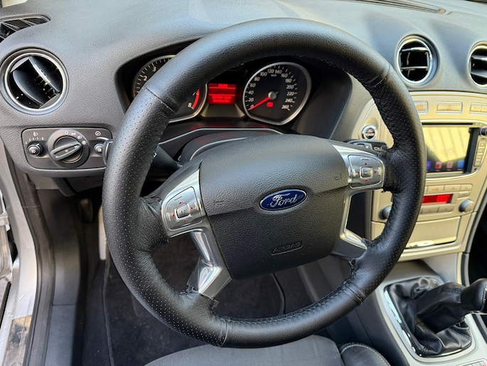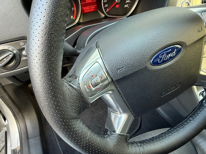 De automatische airconditioning zorgt voor een prettige binnentemperatuur. Het drukke verkeer eist onderweg al uw aandacht op. Daarom is het goed dat deze Ford is voorzien van diverse systemen die u assisteren tijdens de rit. Een automatisch inschakelbare verlichting neemt het waar als het donker wordt of gaat schemeren, en schakelt dan automatisch de verlichting in. Op dezelfde manier "ziet" de regensensor de eerste spatjes regen en schakelt dan de ruitenwissers in, en als het harder gaat regenen zet hij de ruitenwissers ook in een snellere stand. Lange stukken vermoeiend? Niet met de cruise control! Ook is de Ford uitgerust met: automatisch dimmende binnenspiegel, lederen stuur, centrale deurvergrendeling met afstandsbediening, boordcomputer en lederen versnellingspook.