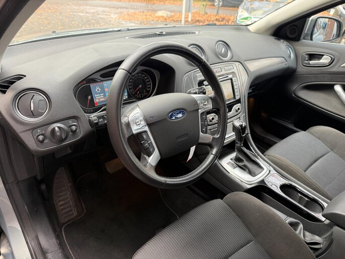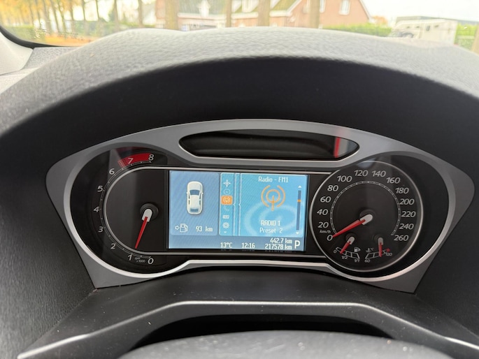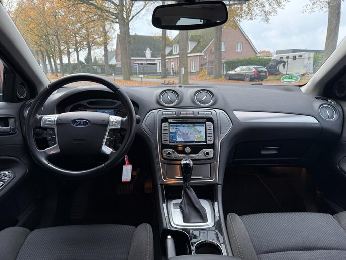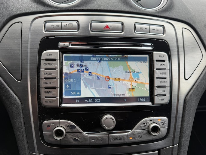 Wat wilt u onderweg horen? Er is volop keus, dankzij bluetooth. Het navigatiesysteem is met het audio-installatiesysteem gecombineerd. U verwacht natuurlijk automatische airconditioning in deze auto, en die is er dan ook. Een plekje vinden in de binnenstad is één, inparkeren is twee. Voor dat laatste heeft deze Ford Mondeo Wagon prima parkeersensoren die u een handje helpen. Er is cruise control aan boord, voor veilige en zuinige kilometers. De uitrusting van deze auto is met automatisch dimmende binnenspiegel, lederen stuur, centrale deurvergrendeling met afstandsbediening, boordcomputer en lederen versnellingspook behoorlijk compleet.