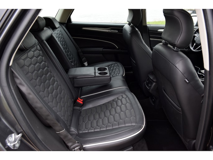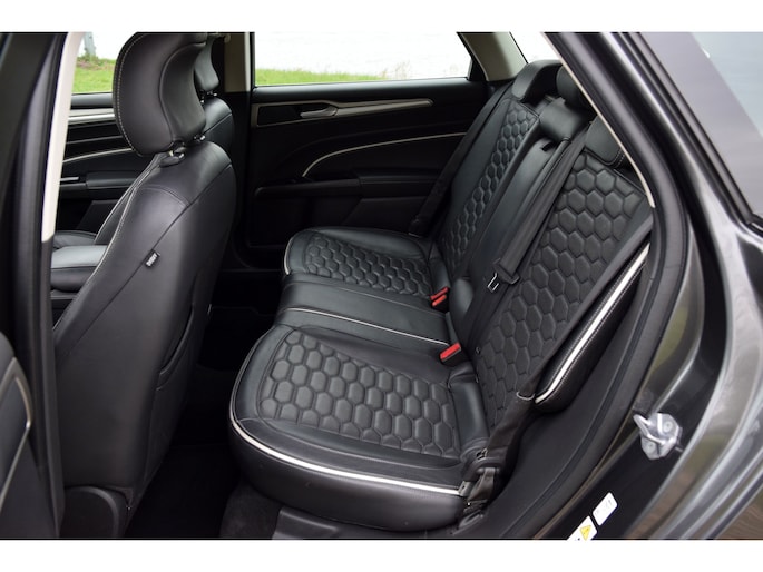 Wat deze Mondeo echt onderscheidt, is de luxe. Denk aan volledig lederen bekleding, elektrisch verstelbare en verwarmde én gekoelde stoelen voor, verwarmde achterbank, verwarmd stuurwiel en een verwarmde voorruit. Ook het rijcomfort is naar een hoog niveau getild met adaptieve cruise control, lane keeping assist, dodehoekdetectie, verkeersbordherkenning en een automatisch parkeersysteem.