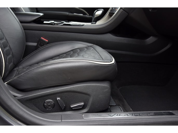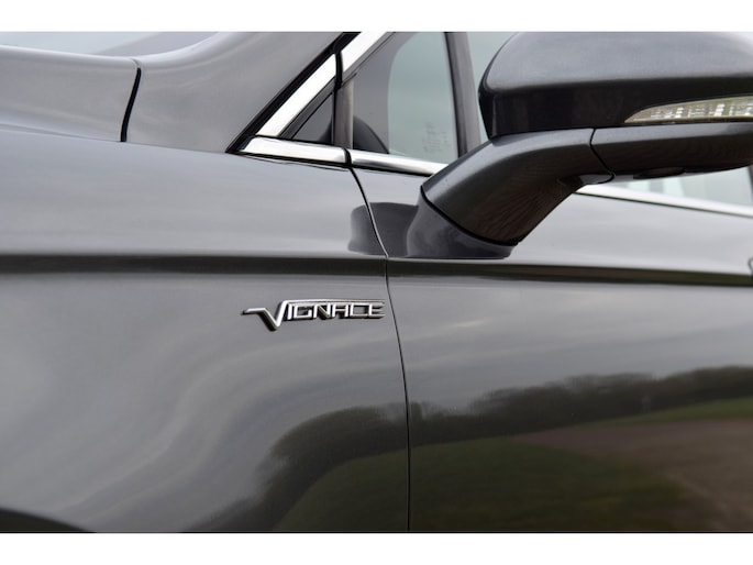 Het exterieur in de kleur Magnetic in combinatie met 19 inch lichtmetalen velgen en chromen accenten geeft de auto een stijlvolle en luxe uitstraling. Het interieur is afgewerkt in Charcoal Black met hoogwaardige materialen, passend bij de Vignale-uitvoering.
