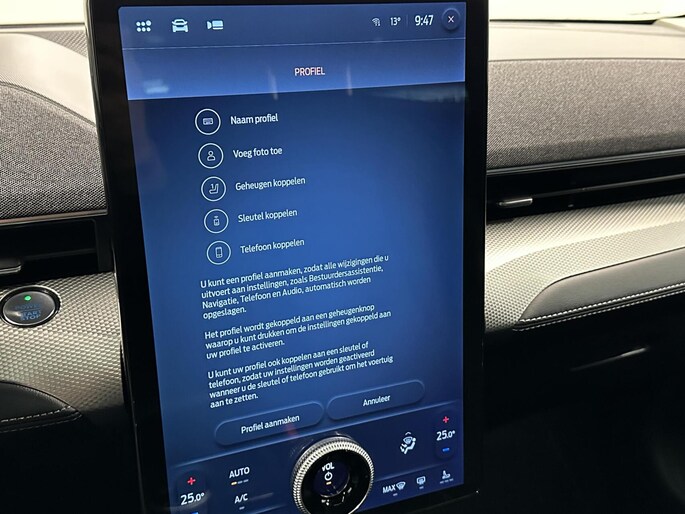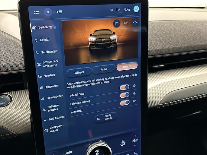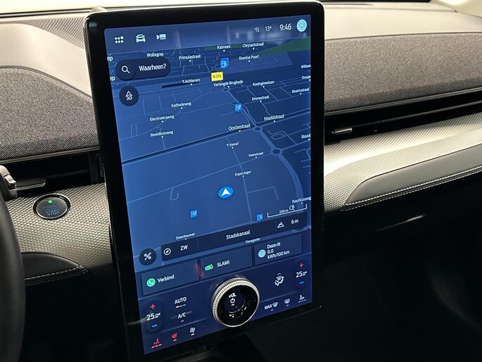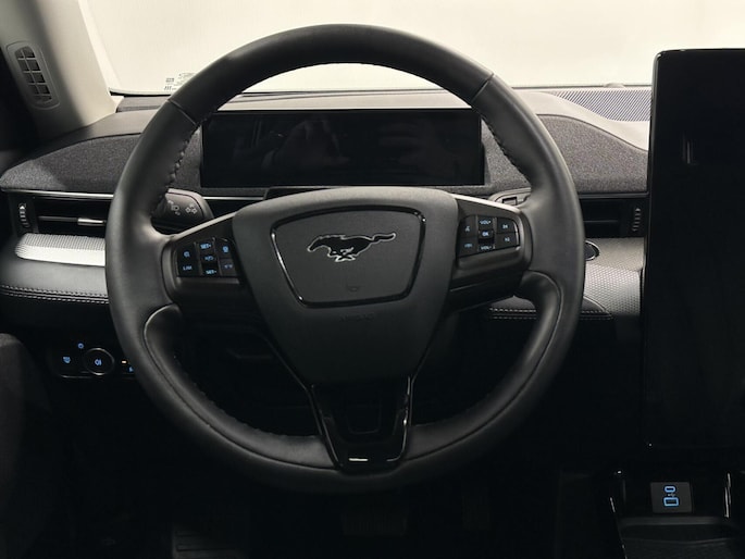 Het systeem controleert alle belangrijke functies en geeft die perfect weer via het digitale dashboard. Met de hulp van vier camera's, biedt de 360 graden camera op deze auto een panoramisch zicht, wat bijzonder nuttig is bij het parkeren en manoeuvreren. Met adaptive cruise control houdt de auto zelfstandig afstand tot uw voorligger. Een veiligheidsverhogende optie waarmee u comfortabel onderweg bent. Spraaksturing luistert naar uw stem en bedient de belangrijkste voertuigfuncties. Deze Ford Mustang Mach-E is voorzien van remote services. Via uw smartphone bedient u diverse functies ook op afstand en krijgt u informatie over de status van uw auto. Natuurlijk behoren full map navigatiesysteem, automatische airconditioning, draadloos opladen, DAB ontvangst, regensensor en keyless entry ook tot de uitrusting van deze complete auto.