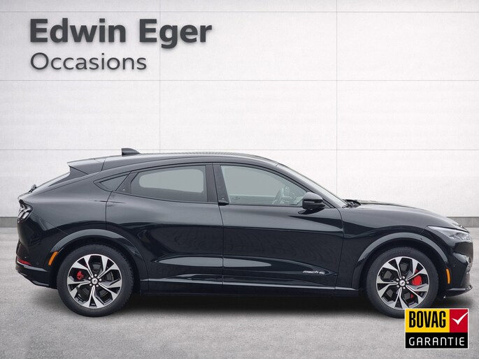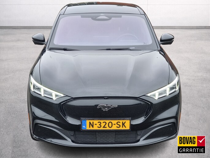 De donker zwart metallic lak, sportieve accenten en het iconische Mustang-design geven deze Mach-E een krachtige en premium uitstraling.