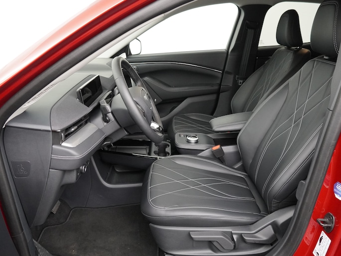 De Ford Mustang Mach E heeft inmiddels echt zijn plaats verdient in de line-up van de elektrische auto's. Onderscheidend is natuurlijk de fantastische styling, zonder ruimte in te leveren. Op diverse plaatsen aan de binnen- en buitenzijde zijn er subtiele verwijzingen naar het icoon dat de originele Mustang is. Kijk maar eens naar de koplampen en achterlichten of naar hoe de surroundspeaker van het B&O audiosysteem verwerkt is in het dashboard.
