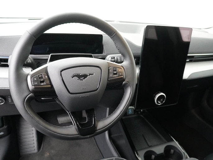 Bijzonder zijn de sensoren en camera's achter het stuur. Deze sensoren worden gebruikt om Ford BlueCruise mogelijk te maken. Ford BlueCruise is een niveau 2+ (SAE-niveau 2) autonoom rijsysteem, wat betekent dat de auto handsfree kan sturen, accelereren en remmen op goedgekeurde snelwegen (BlueZones), maar de bestuurder moet altijd alert blijven, de ogen op de weg houden en klaarstaan om de controle over te nemen. Hoewel de bestuurder het stuur los kan laten, is het geen niveau 3, waar het systeem in specifieke omstandigheden zelfstandig kan rijden zonder constante aandacht van de bestuurder. Er zijn inmiddels in Europa erg veel wegen waar dit systeem gebruikt mag worden. Kijk op https://www.ford.nl/technologie/rijhulp/ford-bluecruise voor meer informatie.