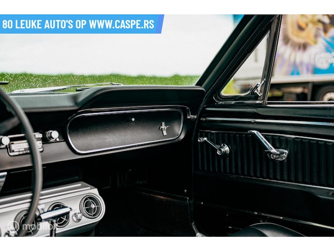 Dit specifieke exemplaar werd in 1965 gebouwd in Dearborn, Michigan en nieuw geleverd in Atlanta (district code 21). Later vond de auto zijn weg naar Zweden, om uiteindelijk recent naar Nederland te worden geïmporteerd. Af fabriek uitgevoerd in de kleur Raven Black met een interieur in Black Crinkle Vinyl bucket seats. In combinatie met het witte cabriodak is het een klassieke en smaakvolle verschijning.