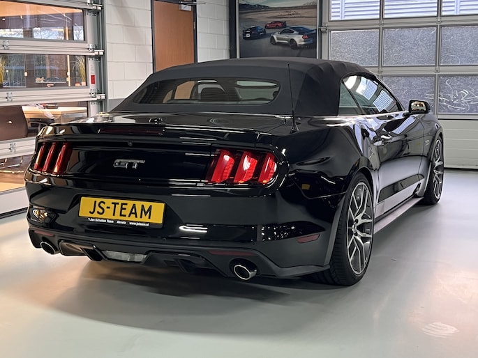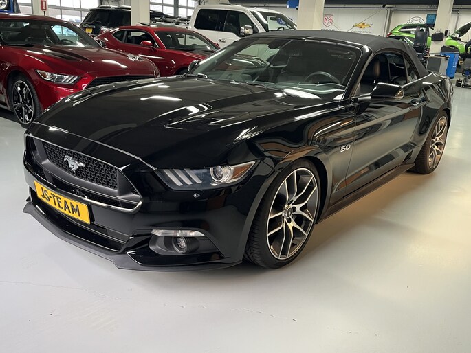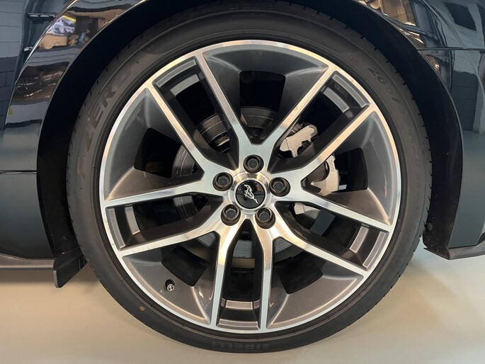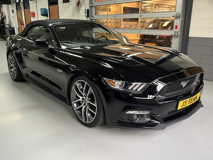 Extra op deze auto: Gepolijste 20 inch lichtmetalen velgen (originele Ford Mustang fabriekswielen) met 265/35-20 Pirelli P-Zero High Performance banden, verlaagd sportonderstel (stoere looks, betere wegligging, zelfde comfort), uitneembare windblokker en design afdekkappen te gebruiken bij neergeklapt cabrio-dak.