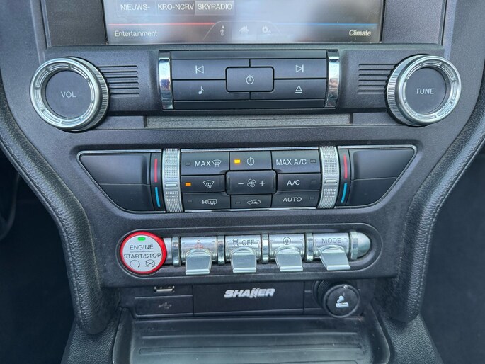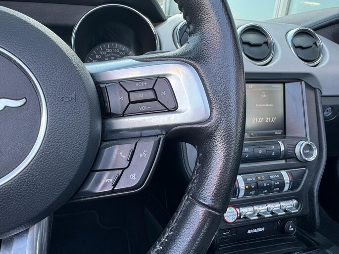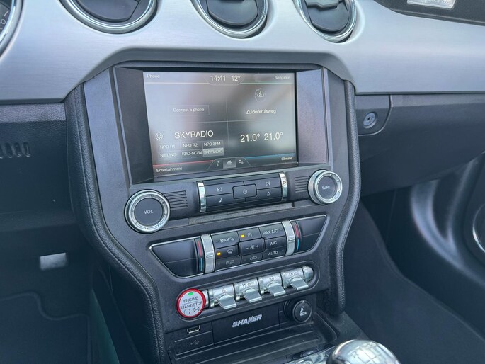 Rijden als nieuw? Dan is deze Ford Mustang Convertible 317pk een fantastische buitenkans. Prille cijfers op de teller, piepjong ogend, verbluffend actueel in extra's en opties... Deze Ford Mustang Convertible 317pk heeft het allemaal! De aandrijving van deze Ford wordt verzorgd door een viercilinder benzinemotor en een handgeschakelde versnellingsbak. Elke rit in deze Ford Mustang Convertible 317pk heeft een tikje meer, dankzij het lederen interieur. Onderdeel van de uitgebreide uitrusting van deze auto is stoelverwarming. Het elektrische cabriodak opent snel en soepel. Zo geniet u maximaal van elke kilometer die u open rijdt. Xenonverlichting zorgt in het donker voor beter zicht. De uitmonstering van deze auto wordt gecompleteerd door onder meer 19 inch lichtmetalen velgen, elektrisch inklapbare buitenspiegels, getint glas, LED-achterlichten, verstelbare lendensteunen en elektrisch bedienbare ramen achter.