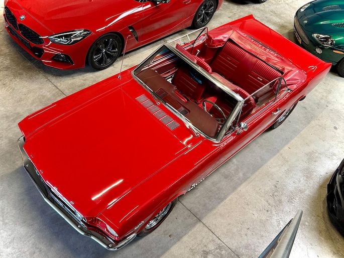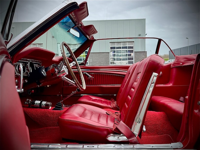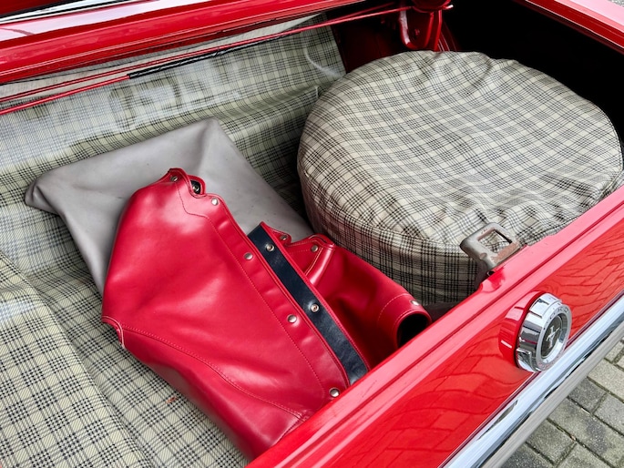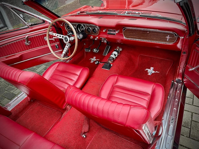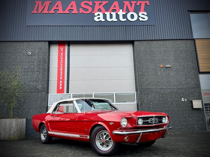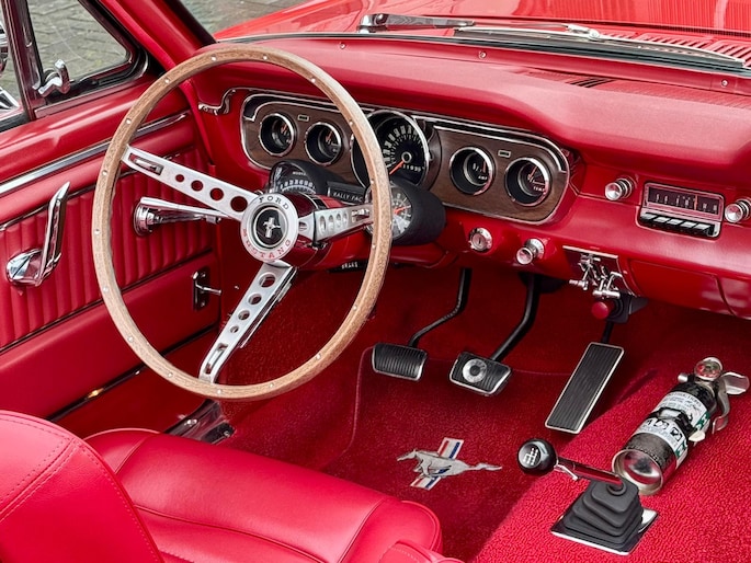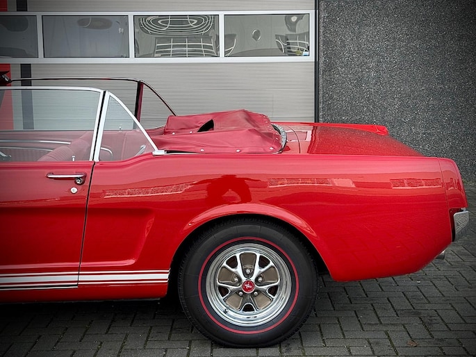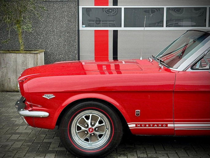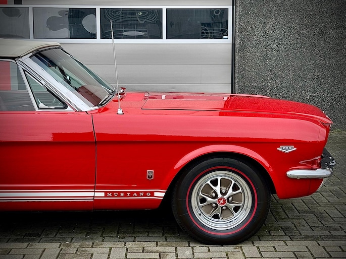 Zeer bijzonder icoon , deze Ford Mustang GT Cabriolet van bouwjaar 1965 in authentieke en periode getrouwe staat met eigentijdse patina. Dit betreft een zeer unieke Mustang met 289 V8 K-code motor met maarliefst 271pk gekoppeld aan een 4-bak handgeschakelde transmissie. Uitgevoerd in waanzinnige kleurstelling van: Rood exterieur , Rood interieur en Witte softtop. In technisch zeer goede , betrouwbare conditie. Zonder achterstallig heden. Recent geleden voorzien van nieuwe draagarmen. De uitrusting omvat: Gt versie , Vinyl interieur , Houten stuurwiel , Veiligheidsgordels , Rally pack (toerenteller en klok) , Radio met antenne , Getinte ramen , Linker buitenspiegel , Chromen koplampringen , Handmatig bedienbare softtop met persenning present , Banden met rode streep , Edelbrock inlaatspruitstuk , Holley carburateur , Open luchtfilter en meer...