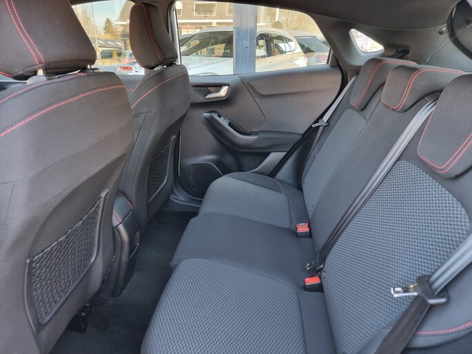 Deze Ford Puma ST-Line van bouwjaar 2023 is uitgevoerd met de mild-hybride techniek en levert gecombineerd 136pk, goed voor krachtige en zeer zuinige prestaties.