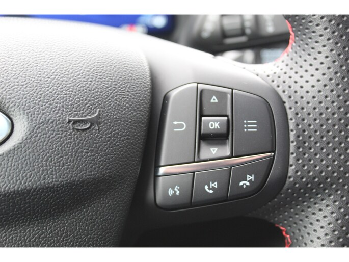 1.0-125pk EcoBoost Hybrid ST-Line. April 2024 ! Slechts 8.400km ! Autm. airco, navigatie, telefoonvoorb., camera, pdc v+a, parkeerassistent, LED verl., metallic lak, LM wielen, stoel-, stuur- en voorraamverw., lane- en sideassist, adapt. cruise cntrl etc