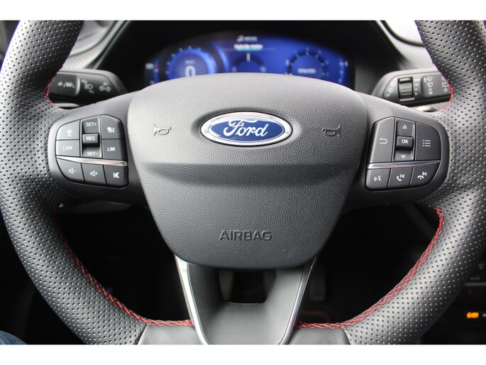 1.0-125pk EcoBoost Hybrid ST-Line X. April 2024 ! Slechts 9.700km ! Autm. airco, navigatie, telefoonvoorb., camera, pdc v+a, parkeerassistent, LED verl., metallic lak, LM wielen, stoel-, stuur- en voorraamverw., lane- en sideassist, adapt. cruise cntrl etc
