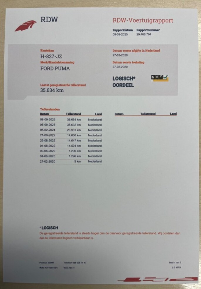Kilometerstand gecontroleerd