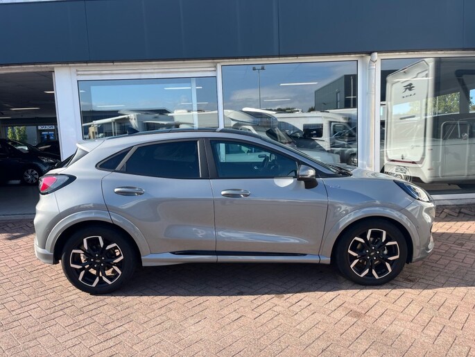 Werkelijk een prachtige Ford Puma 1.0 (125pk) Hybrid ST-Line X First Edition met panorama schuifkanteldak uit 2020 met aantoonbaar 35.634km gereden. Origineel Nederlands geleverd en volledig onderhouden bij de Ford dealer. Rijdt uiteraard als nieuw en zeer compleet uitgevoerd. De kleur is het prachtige Solar Silver. Voorzien van o.a. climate control, adaptive cruise control, 4 elektrische ramen, audiosysteem met Bluetooth en AppleCarPlay AndroidAuto en B&O speakers, stoelverwarming, stuurverwarming, voorruitverwarming, panoramadak met schuif kantelfunctie, Isofix, parkeerhulp, 18 inch lichtmetalen velgen, achteruitrijcamera, LaneAssist, dodehoekdetectie, spraakbesturing, KeylessGo entry, PDC voor en achter, elektrische achterklep met voetbediening, halflederen bekleding, virtual cockpit, etc, etc. De Hybride techniek zorgt voor een zeer laag brandstofgebruik. Alle boekjes en beide sleutels aanwezig. Wordt geleverd met 12 maanden Bovag garantie.