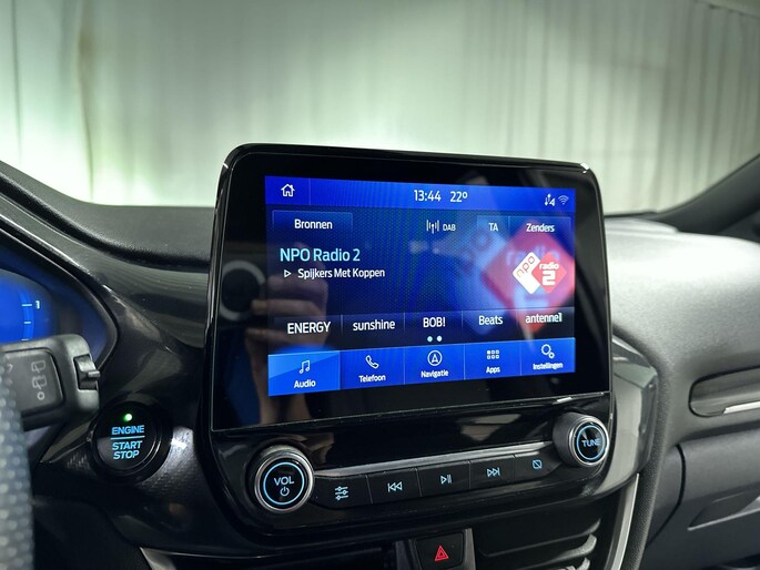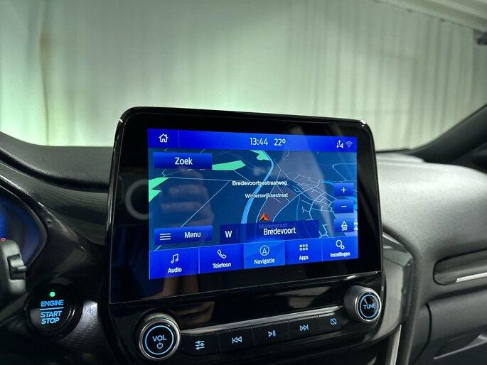 Met het digitale dashboard in deze auto kunt u de interface van uw cockpit personaliseren. U ziet geen paaltje meer over het hoofd dankzij de achteruitrijcamera. Deze auto gaat met u in gesprek. Hij vertelt u dankzij remote services alles over de status van diverse onderdelen en laat zich desgevraagd ook activeren. Gewoon via uw smartphone. Elk genre muziek komt tot z'n recht. Het high performance audiosysteem is perfect in te regelen op uw smaak! Het drukke verkeer eist onderweg al uw aandacht op. Daarom is het goed dat deze Ford is voorzien van diverse systemen die u assisteren tijdens de rit. Een automatisch inschakelbare verlichting neemt het waar als het donker wordt of gaat schemeren, en schakelt dan automatisch de verlichting in. Op dezelfde manier "ziet" de regensensor de eerste spatjes regen en schakelt dan de ruitenwissers in, en als het harder gaat regenen zet hij de ruitenwissers ook in een snellere stand. Met dashboard met spraakbediening, full map navigatiesysteem, DAB ontvangst, airconditioning, automatisch dimmende binnenspiegel en centrale deurvergrendeling met afstandsbediening is deze Ford helemaal compleet.
