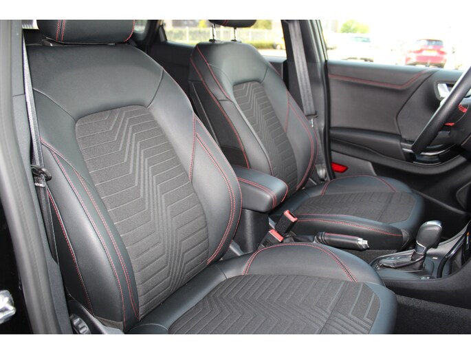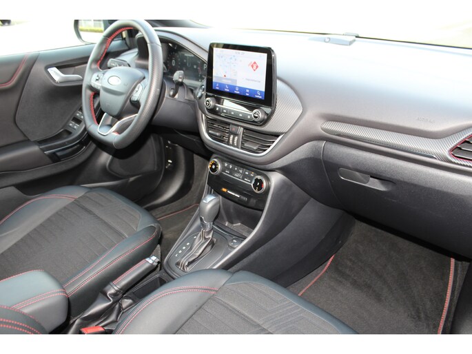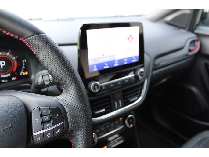 1.0-125pk EcoBoost Hybrid ST-Line X Two tone. AUTOMAAT ! Gun uzelf het plezier en comfort van een automaat ! Ca. €. 10.000,- beneden de nieuwprijs ! Volautm. airco, navigatie, telefoonvoorb., cruise control, lane assist, B&O soundsystem, LED verlichting, camera, parkeersensoren v+a etc.