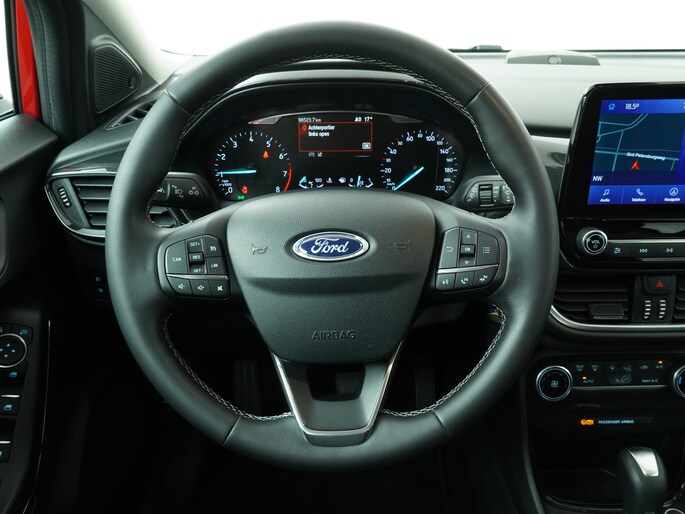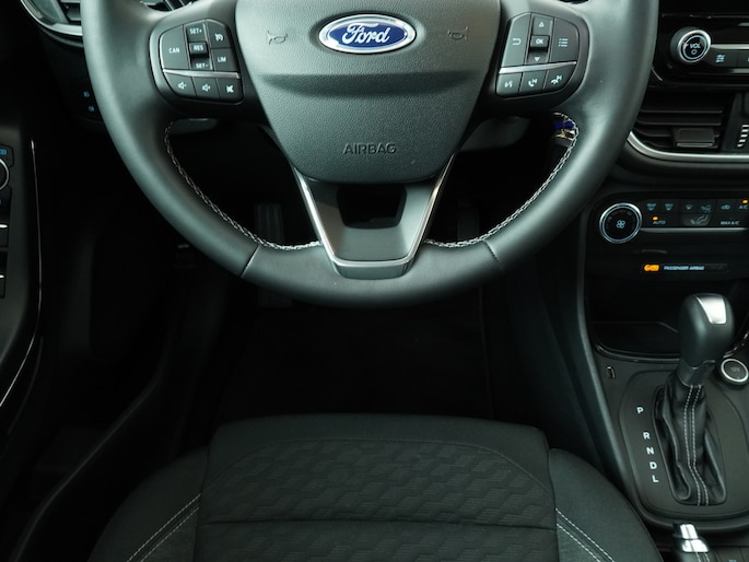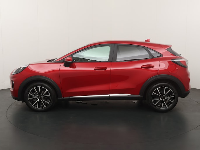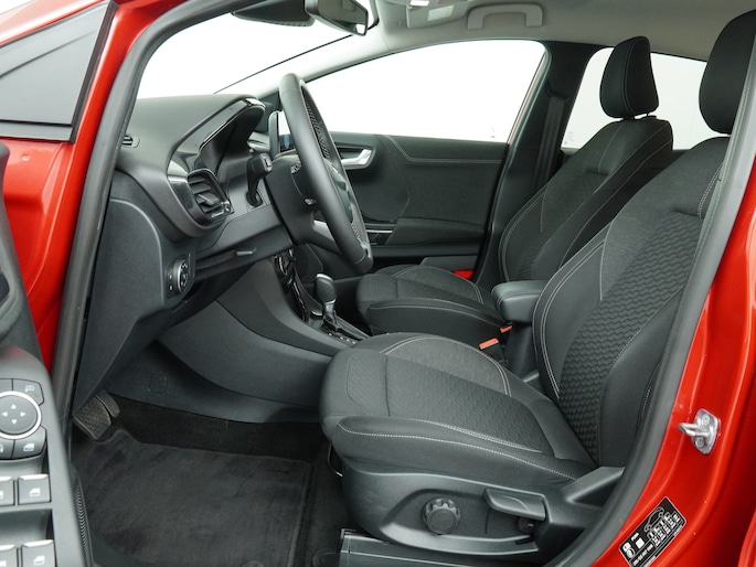 Maak kennis met de Ford Puma. Fords compacte crossover SUV. Compact van buiten en ruim van binnen. De sportieve lijnen en de aflopende daklijn laten zien dat de Puma een sportieve auto is. Door de hoge zit is het instappen erg gemakkelijk. Wist u dat de kofferbak van de Puma groter is dan de bagageruimte van de Ford Focus?