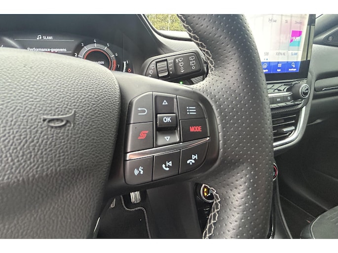 Deze Ford is voorzien van verschillende intelligente veiligheidsvoorzieningen. Ze kijken tijdens het rijden als het ware met je mee, ze signaleren potentieel gevaarlijke situaties en in een aantal gevallen kunnen ze ook ingrijpen. Verkeersborddetectie herkent tijdelijke en permanente verkeersborden langs en boven de weg. Onbedoeld buiten de rijstrook raken wordt voorkomen door het Lane-keeping systeem. Onbedoeld bumperkleven is er niet bij, dankzij de forward collision warning. Die waarschuwt direct als een botsrisico met je voorligger dreigt. Dankzij veiligheidsvoorzieningen als hill hold functie, brake assist en bandenspanningcontrolesysteem, ben je steeds veilig onderweg.