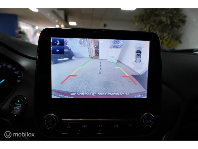 Zoals u mag verwachten van deze Ford Puma is hij uitgerust met een reeks aan actieve veiligheidssystemen. Tijdens de rit hebt u altijd een bijrijder, want de verkeersbord-detectie leest de borden langs de weg en projecteert ze voor u op het instrumentarium. Een camera houdt de juiste koers binnen de rijstrook in de gaten en het Lane-keeping systeem corrigeert bij afwijkingen. De sensor van het forward collision warning-systeem registreert permanent de afstand tot voorliggers en grijpt in als een botsing dreigt. In deze Ford vinden we verder een dodehoekdetectie, hill hold functie, brake assist en bandenspanningcontrolesysteem.