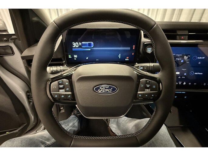 Als bestuurder van deze Ford ben je nooit alleen. Je wordt onderweg bijgestaan door technologische hulpmiddelen die samen met jou de weg in de gaten houden. Als het nodig is, grijpen ze zelfs in, door te remmen of bij te sturen. In het instrumentarium laat de verkeersborddetectie de actuele verkeersborden zien. Deze Ford Puma Gen-E is ook behulpzaam als het gaat om een rechte koers. Het Lane-keeping systeem signaleert en corrigeert als je onbedoeld de rijstrooklijnen dreigt te overschrijden.