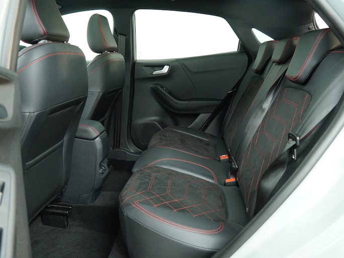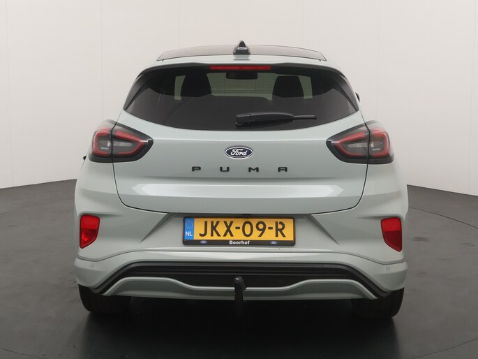 Maak kennis met de Ford Puma. Fords compacte cross-over SUV. Compact van buiten en ruim van binnen. De sportieve lijnen en de aflopende daklijn laten zien dat de Puma een sportieve auto is. Door de hoge zit is het instappen erg gemakkelijk. Wist u dat de kofferbak van de Puma groter is dan de bagageruimte van de Ford Focus? Daarnaast is deze Puma voorzien van hybride techniek. De mild-hybride technologie omvat een elektromotor die helpt de efficiency te verbeteren.