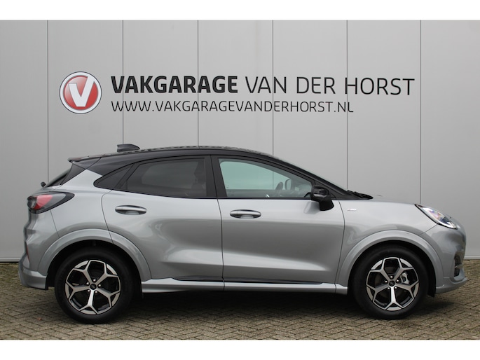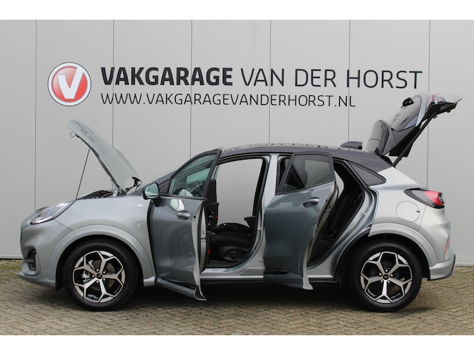 1.0-125pk EcoBoost Mild-Hybrid ST-Line, two-tone. Alwéér een prachtige hoogzitter met slechts 12.000km ! Autm. airco, camera 360gr., LM wln, side- en lane assist, adaptieve cruise cntrl, navigatie, telefoonvoorb., stoel-, stuur-- en voorraamverw. etc.