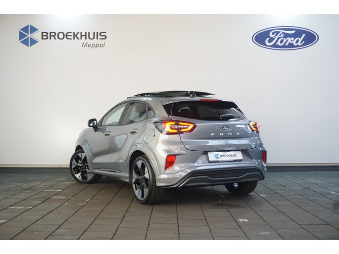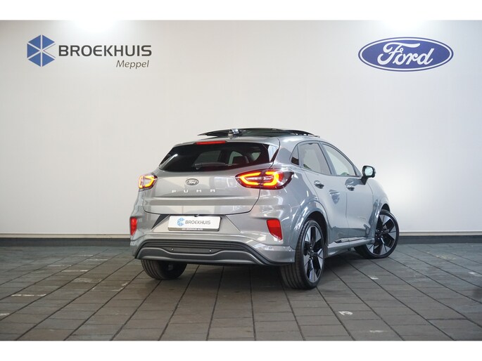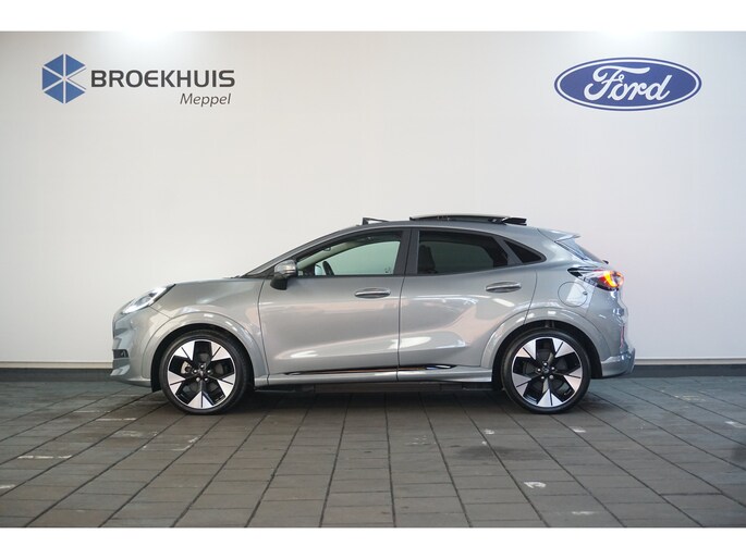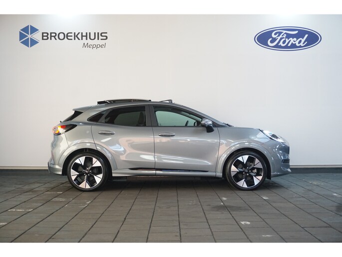 Hij biedt volop ruimte, deze Ford Puma Gen-E, en dankzij zijn elektrische aandrijving is er ook plenty vermogen voor een dynamische rijstijl. CO2-uitstoot? Met de elektromotor rijdt u stil en schoon! Op de teller van deze auto staat slechts 538 kilometer. Een krachtige motor geeft deze auto zijn sportieve prestaties. 's Winters komen de verwarmbare voorstoelen heerlijk van pas. Dat noemen ze nou een ruimtelijk effect: het elektrisch bediende glazen panoramadak. Met een druk op de knop gaat de elektrische achterklep open. Een verwarmd stuurwiel overbodige luxe? Wacht maar tot het kouder wordt! Daglicht bij nacht? De koplampen met matrix LED-verlichting zorgen ervoor. De uitmonstering van deze auto wordt gecompleteerd door onder meer 19 inch lichtmetalen velgen, geluidsisolerende ramen, LED-achterlichten en verstelbare lendensteunen. Begeef u op de geweldige rit door de digitale wereld van mobiliteit waar alles wat u wenst voor comfort en veiligheid, wordt geprojecteerd op het digitale dashboard. Met de hulp van vier camera's, biedt de 360 graden camera op deze auto een panoramisch zicht, wat bijzonder nuttig is bij het parkeren en manoeuvreren. Als u de adaptive cruise control inschakelt, regelt de auto zelf de snelheid en de afstand tot de auto voor u. De ingebouwde file assistent is een echte helper als het vaststaat onderweg. Het systeem meet ruimte tot de auto vóór u permanent en activeert zelfs de remmen als uw voorligger stopt. Pech oplossen en zelfs voorkomen? Gaat eenvoudig. Via Connected Services heeft u alle data in de hand, gewoon op de smartphone! Met premium audiosysteem, navigatiesysteem, automatische airconditioning, DAB ontvangst, regensensor en keyless entry is deze auto helemaal compleet. Geavanceerde technische systemen houden tijdens elke rit het verkeer in de gaten en reageren op potentieel gevaarlijke situaties. Verkeersbord-detectie herkent verkeersborden en toont deze op het instrumentarium van de auto. Het Lane-keeping systeem let constant op en waarschuwt of corrigeert als u onoplettend over de lijnen van de rijstrook gaat. De auto is ook uitgerust met dodehoekdetectie en frontale botsbescherming. Met deze fantastische elektrische auto is de toekomst begonnen. Even bellen voor een afspraak en hij staat klaar voor een proefrit!