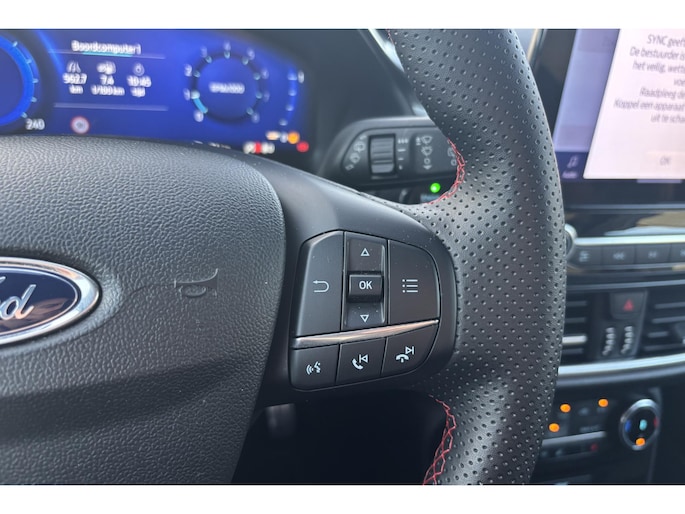 De slimme lay-out van het digitale dashboard zorgt voor een uitstekend overzicht onderweg. Spraaksturing maakt het eenvoudiger en veiliger om deze auto onderweg te bedienen. Zoals je van zo'n jonge auto mag verwachten, zijn hier ook de geavanceerde remote services aanwezig. Simpelweg met een app op uw smartphone controleer je op afstand de status van de auto en bedien je diverse functies. Voor wie hoge eisen stelt aan geluid en akoestiek, is deze auto voorzien van een high performance audiosysteem. Altijd een deskundige gids aan boord, dankzij het full map navigatiesysteem. Met automatische airconditioning, draadloos opladen, DAB ontvangst, parkeersensoren achter, regensensor en cruise control is deze Ford helemaal compleet.