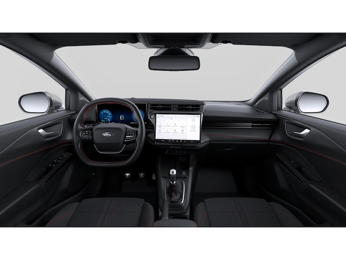 Go Ford, Go Further. En dat maakt deze auto helemaal waar. Het is een nieuwe auto, hij is nu uit voorraad leverbaar. De aandrijving komt voor rekening van een benzinemotor en een handgeschakelde zesversnellingsbak. 's Winters komen de verwarmbare voorstoelen heerlijk van pas. De sportstoelen houden u en uw passagier stevig vast tijdens een snelle rit, maar bieden ook altijd comfortabele ondersteuning. De elektrische achterklep opent met een druk op de knop, zodat u gemakkelijk toegang heeft tot de bagageruimte. Als het buiten koud wordt, voelt zo'n verwarmd stuurwiel heerlijk aan. Bij de zeer complete uitrusting van deze auto behoren ook 18 inch lichtmetalen velgen, Full LED koplampen, sportonderstel, geluidsisolerende ramen, elektrisch inklapbare buitenspiegels en in delen neerklapbare achterbank.